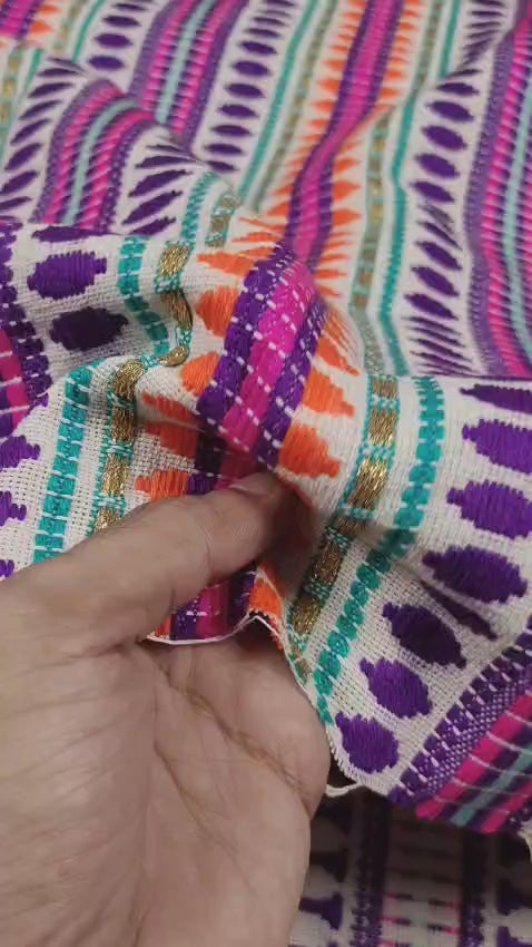Jacquard fabric is a type of woven fabric that features intricate patterns and designs woven (not printed) directly into the fabric. The fabric is a medium-thickness fabric that can last for years. Jacquard fabrics can be made from various materials including cotton, wool, and acrylic.