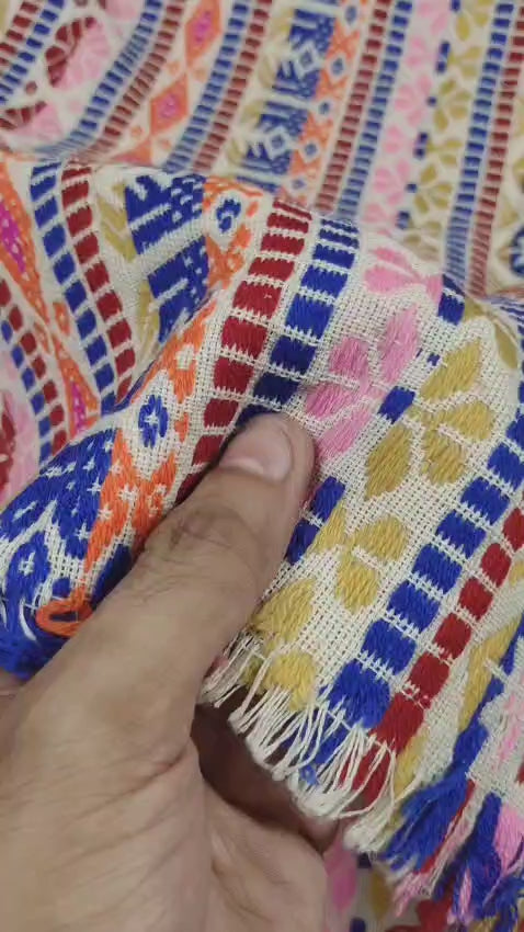Jacquard fabric is a type of woven fabric that features intricate patterns and designs woven (not printed) directly into the fabric. The fabric is a medium-thickness fabric that can last for years. Jacquard fabrics can be made from various materials including cotton, wool, and acrylic.