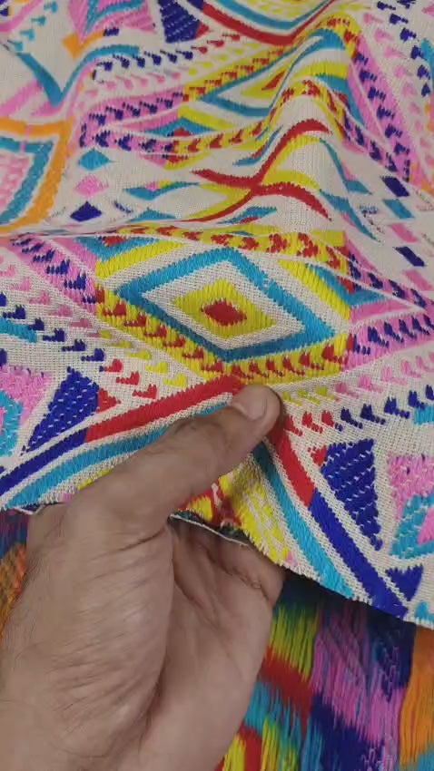 Jacquard fabric is a type of woven fabric that features intricate patterns and designs woven (not printed) directly into the fabric. The fabric is a medium-thickness fabric that can last for years. Jacquard fabrics can be made from various materials including cotton, wool, and acrylic.