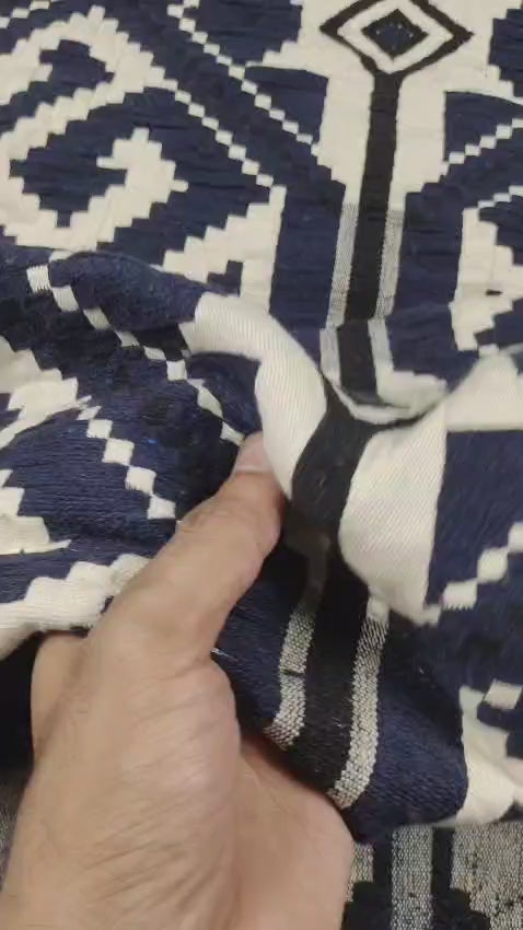 Jacquard fabric is a type of woven fabric that features intricate patterns and designs woven (not printed) directly into the fabric. The fabric is a medium-thickness fabric that can last for years. Jacquard fabrics can be made from various materials including cotton, wool, and acrylic.