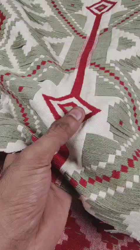 Jacquard fabric is a type of woven fabric that features intricate patterns and designs woven (not printed) directly into the fabric. The fabric is a medium-thickness fabric that can last for years. Jacquard fabrics can be made from various materials including cotton, wool, and acrylic.
