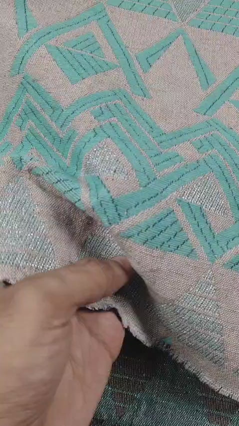 Jacquard fabric is a type of woven fabric that features intricate patterns and designs woven (not printed) directly into the fabric. The fabric is a medium-thickness fabric that can last for years. Jacquard fabrics can be made from various materials including cotton, wool, and acrylic.