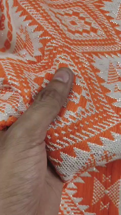 Jacquard fabric is a type of woven fabric that features intricate patterns and designs woven (not printed) directly into the fabric. The fabric is a medium-thickness fabric that can last for years. Jacquard fabrics can be made from various materials including cotton, wool, and acrylic.