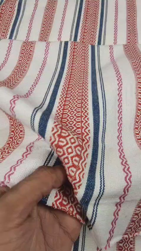 Jacquard fabric is a type of woven fabric that features intricate patterns and designs woven (not printed) directly into the fabric. The fabric is a medium-thickness fabric that can last for years. Jacquard fabrics can be made from various materials including cotton, wool, and acrylic.