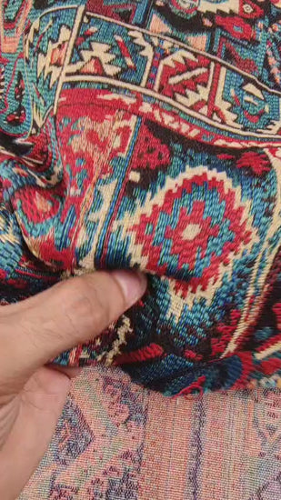 Jacquard fabric is a type of woven fabric that features intricate patterns and designs woven (not printed) directly into the fabric. The fabric is a medium-thickness fabric that can last for years. Jacquard fabrics can be made from various materials including cotton, wool, and acrylic.