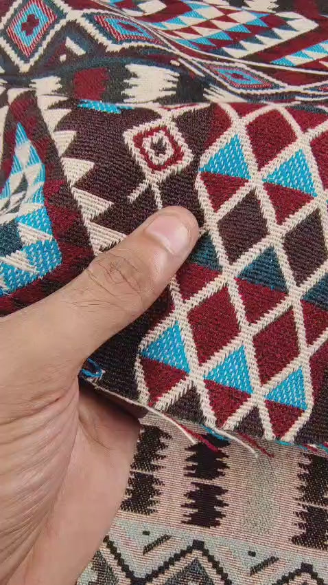 Jacquard fabric is a type of woven fabric that features intricate patterns and designs woven (not printed) directly into the fabric. The fabric is a medium-thickness fabric that can last for years. Jacquard fabrics can be made from various materials including cotton, wool, and acrylic.