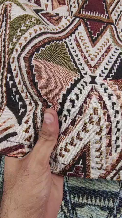Jacquard fabric is a type of woven fabric that features intricate patterns and designs woven (not printed) directly into the fabric. The fabric is a medium-thickness fabric that can last for years. Jacquard fabrics can be made from various materials including cotton, wool, and acrylic.