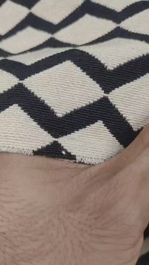 Jacquard fabric is a type of woven fabric that features intricate patterns and designs woven (not printed) directly into the fabric. The fabric is a medium-thickness fabric that can last for years. Jacquard fabrics can be made from various materials including cotton, wool, and acrylic.