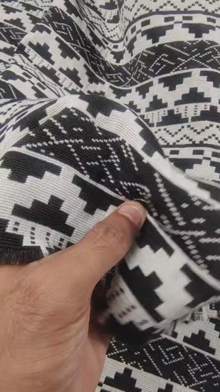 Jacquard fabric is a type of woven fabric that features intricate patterns and designs woven (not printed) directly into the fabric. The fabric is a medium-thickness fabric that can last for years. Jacquard fabrics can be made from various materials including cotton, wool, and acrylic.